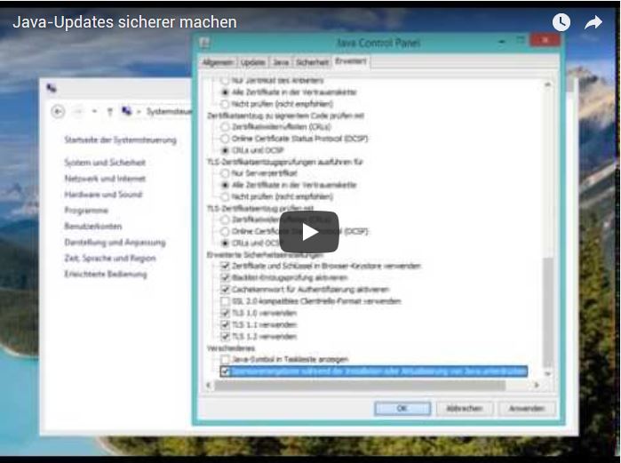 Durch diese Option wird das Updaten von Java sicherer. Wir empfehlen Updates für Windows, Office, Adobe Produkte und Java immer so schnell wie möglich durchzuführen.